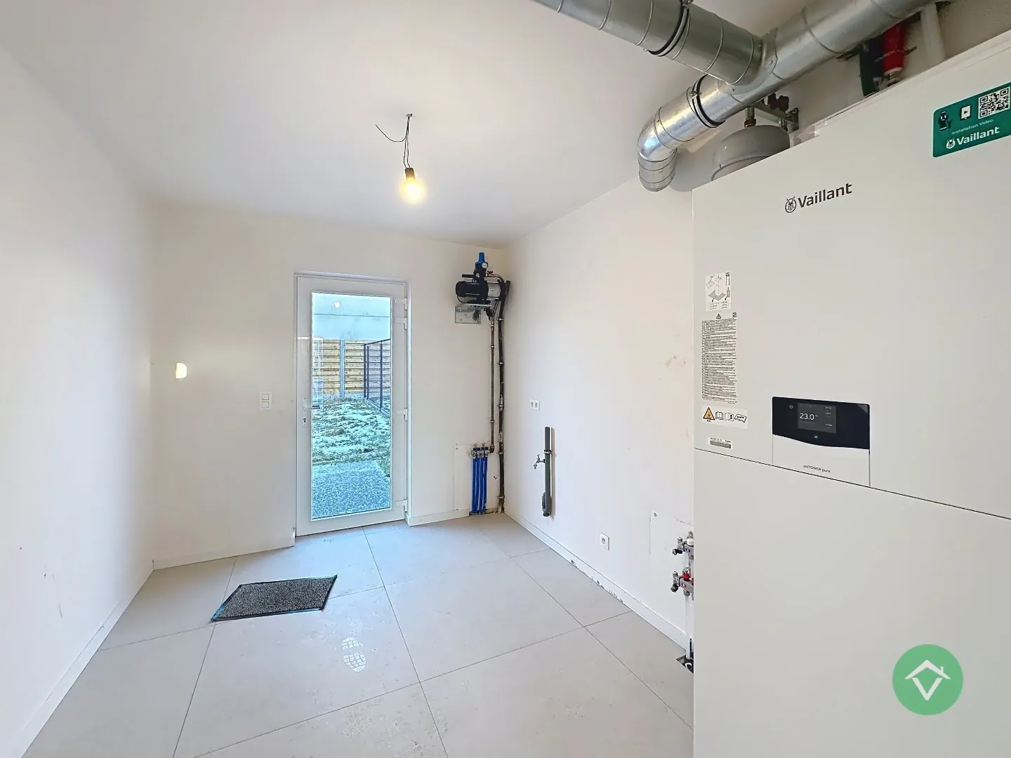 - Een warmtepomp gekoppeld aan vloerverwarming