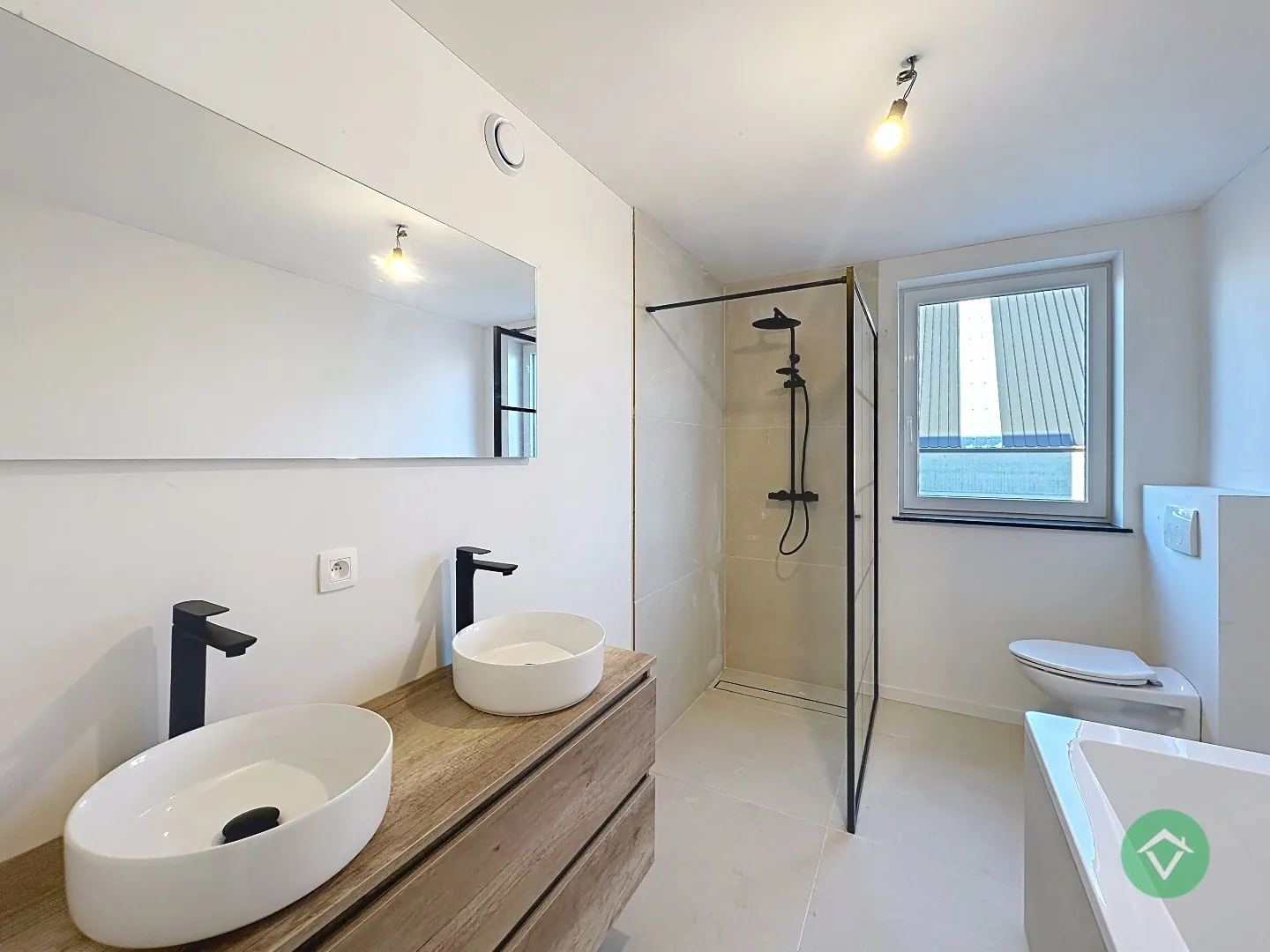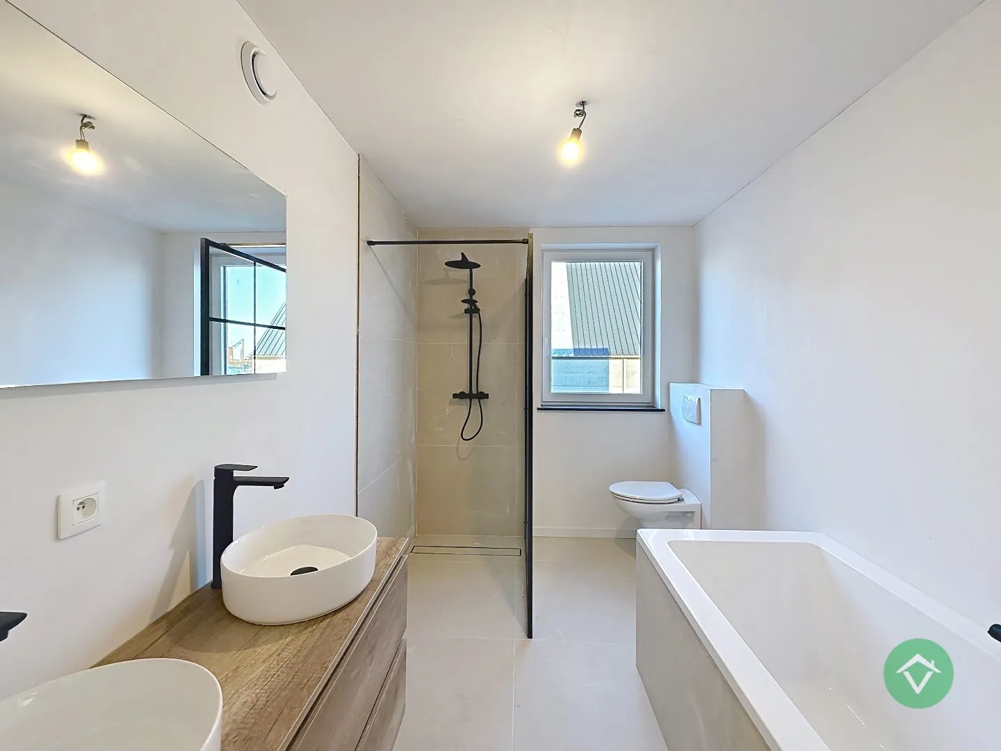 Op de bovenverdieping bevinden zich drie volwaardige slaapkamers, ... geschikt als kinderkamer, thuiskantoor of hobbyruimte. De badkamer is modern ingericht en voorzien van een inloopdouche, lavabomeubel en een ligbad. Daarnaast is er nog een afzonderlijk toilet op het gelijkvloers voor extra comfort.