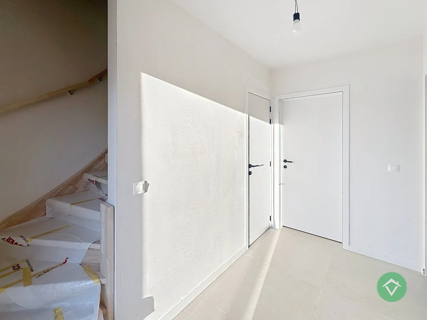 De woning betreedt u via de inkomhal, die aansluit op een ruime en lichtrijke leefruimte. Dankzij de open indeling vloeien de woonkamer, eetplaats en volledig uitgeruste keuken naadloos in elkaar over – ideaal voor gezellige momenten met familie of vrienden. Aansluitend aan de keuken bevindt zich een praktische berging met aansluiting voor wasmachine en extra opbergruimte.