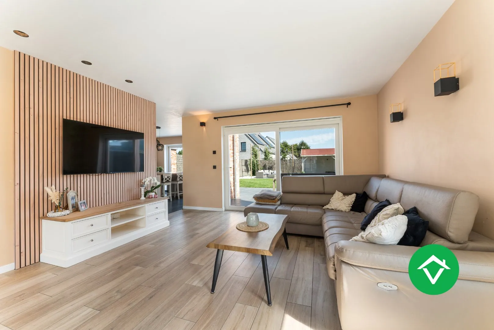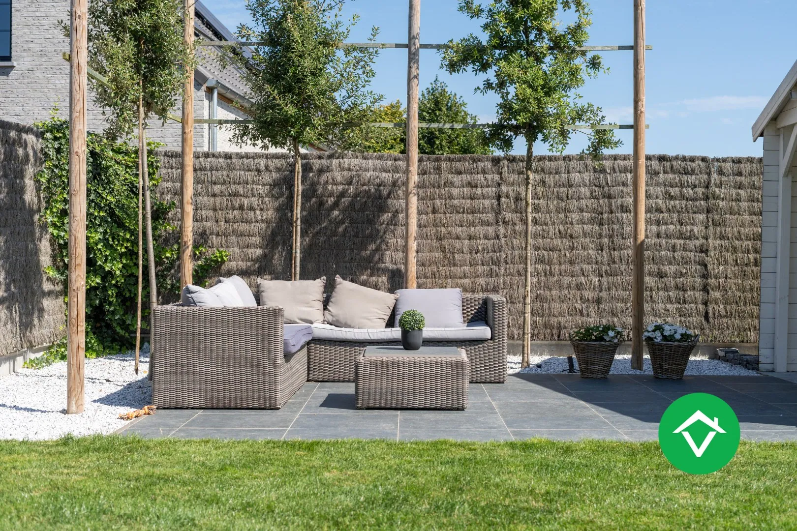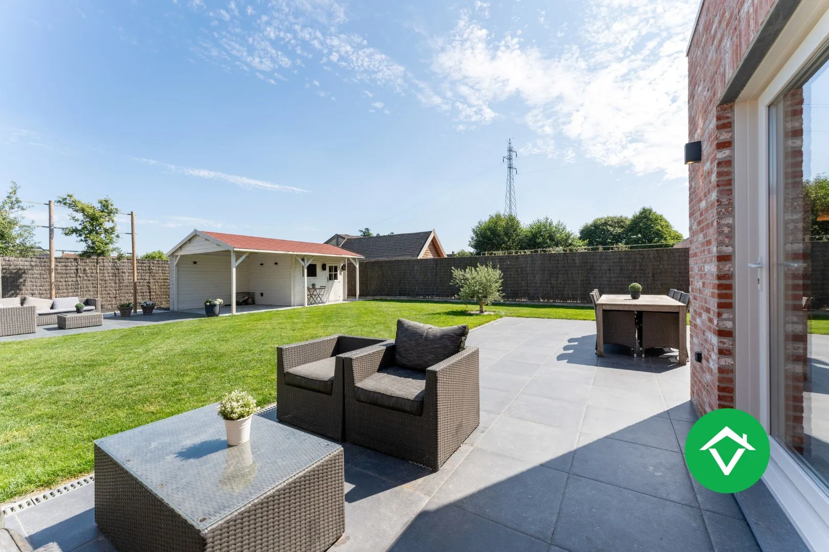 Vanuit de keuken en de leefruimte hebben we leuk zicht op de zonnige tuin. Deze is voorzien van 2 terrassen en een ruim ... tuinhuis met overkapping.