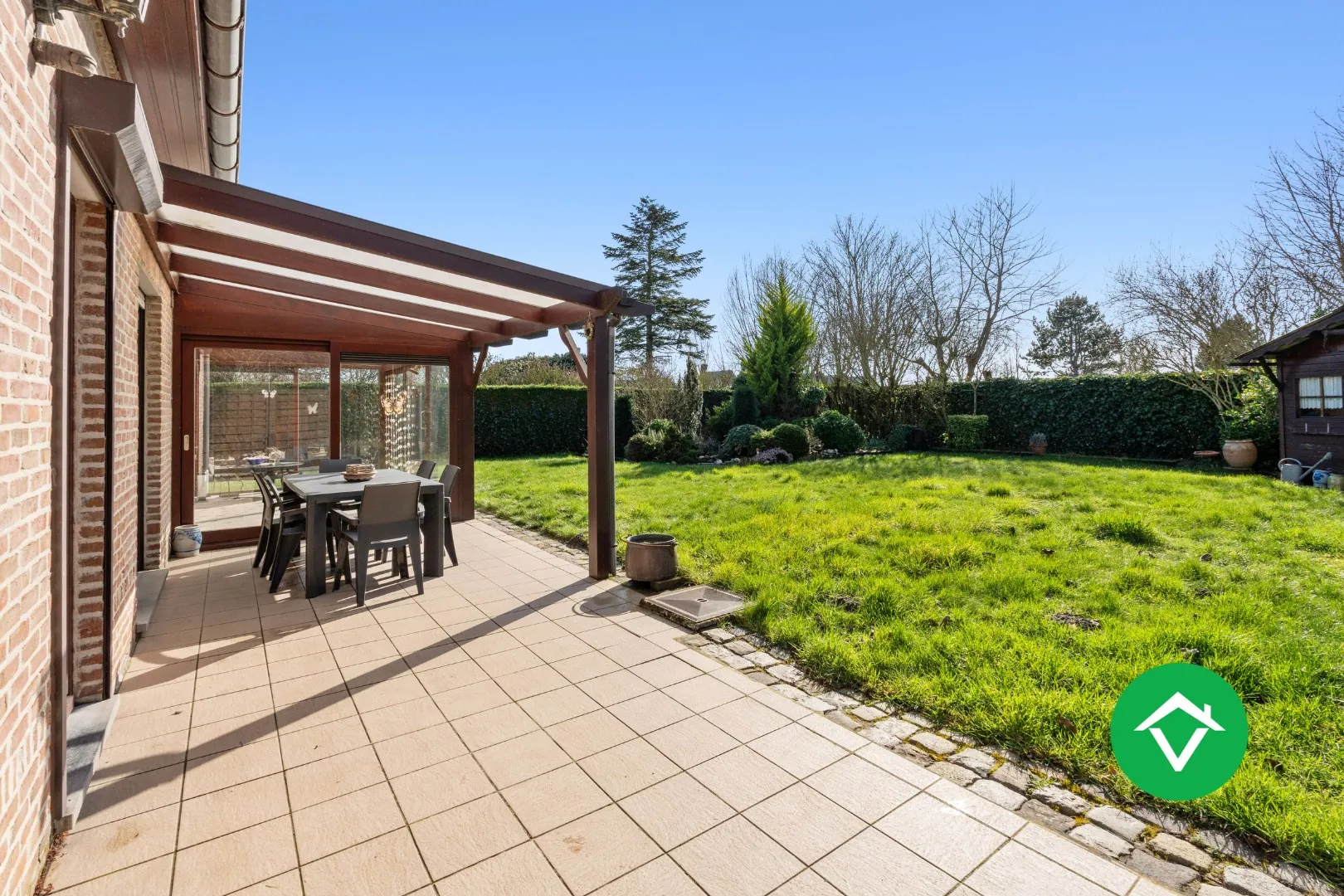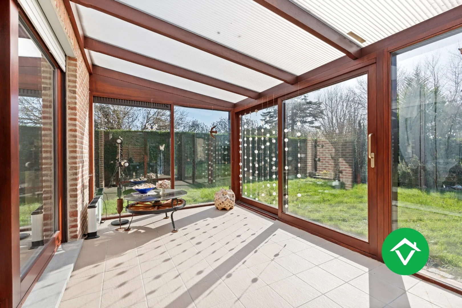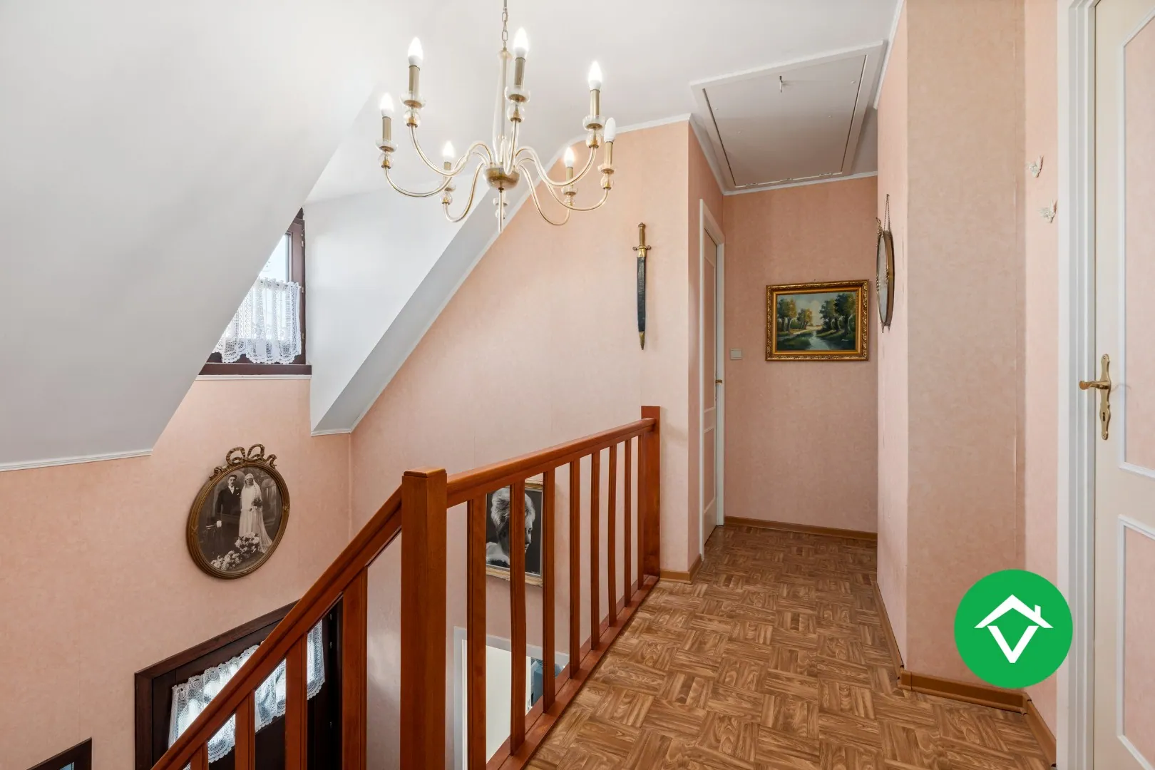 De woning bestaat uit: voortuin - oprit - inkomhal - toilet - living - keuken - veranda - berging - wasplaats - garage - terras - tuin - tuinhuis - nachthal - 3 slaapkamers - badkamer - opbergzolder.