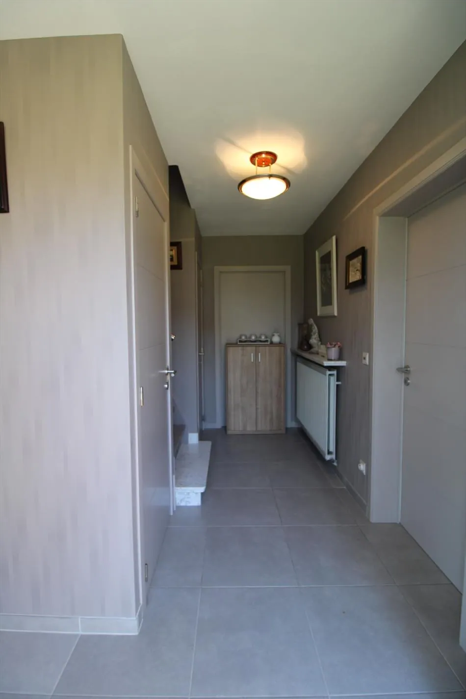 Deze instapklare, gerenoveerde woning is gelegen in een rustige kindvriendelijke woonwijk. Met zijn topligging is het centrum en de autosnelweg nabij. De woning zelf beschikt over, op het gelijkvloers: inkomhal met berging - toilet - woonkamer - keuken - ruime wasplaats en garage - terras - tuin - tuinhuis - parkeerplaats voor de garage. Op de eerste verdieping hebben we: 3 grote slaapkamers - badkamer met toilet en zolder. EPC-waarde is van voor het plaatsen van dubbele beglazing. Attest goedgekeurde elektriciteit aanwezig.