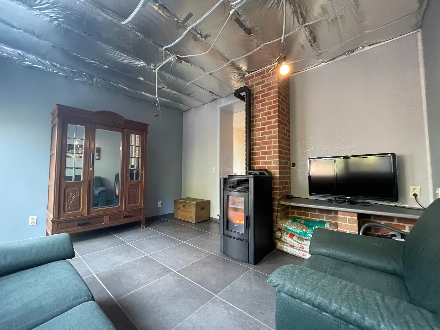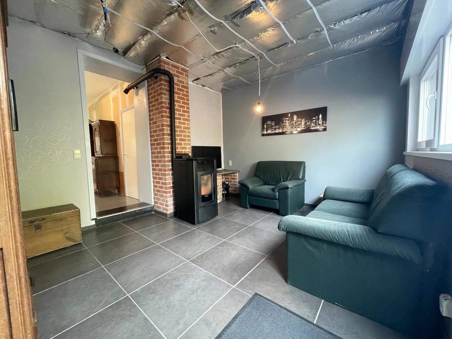 De rijwoning beschikt over: inkomhal - keuken - berging - eetplaats - living met pelletkachel - zonnige tuin met berging - gelijkvloers toilet.