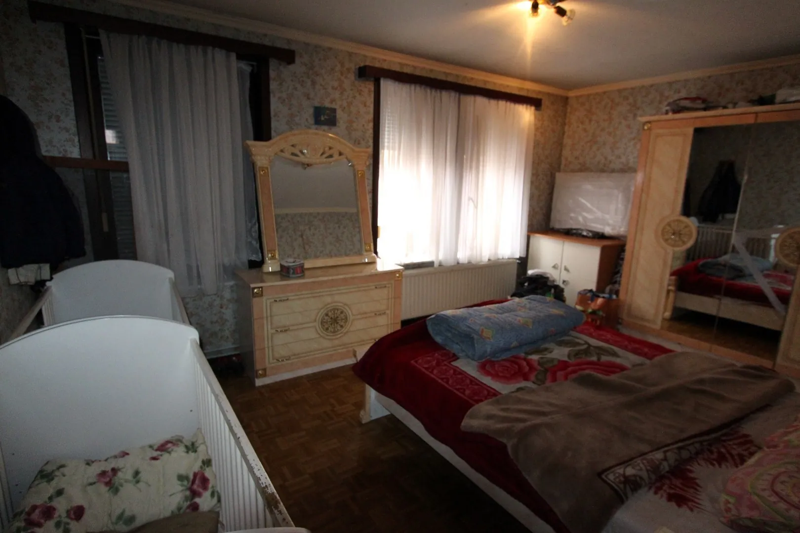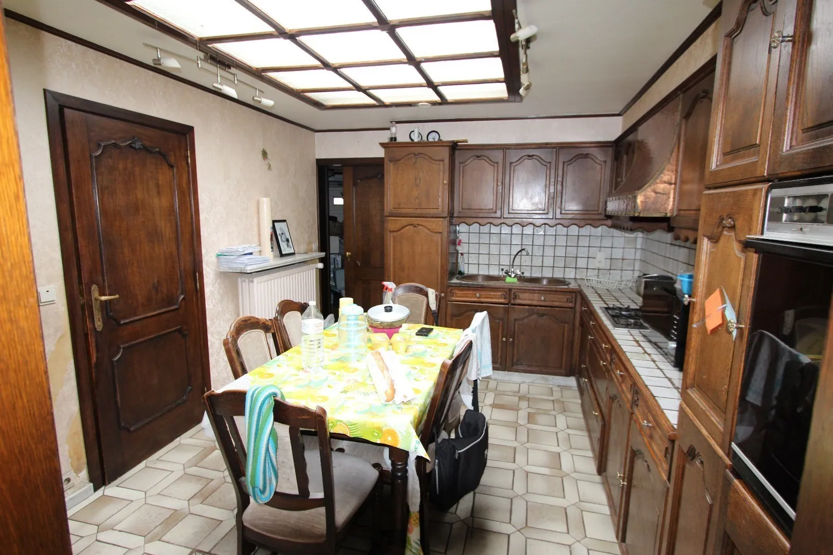 Woning gelegen in de en bestaande uit: eetplaats, salon, keuken, apart toilet, badkamer, grote garage, nachthal, 3 slaapkamers, er is geen tuin of koer aanwezig. Langs achter is er toegang aan de woning.