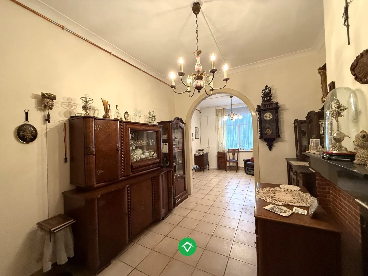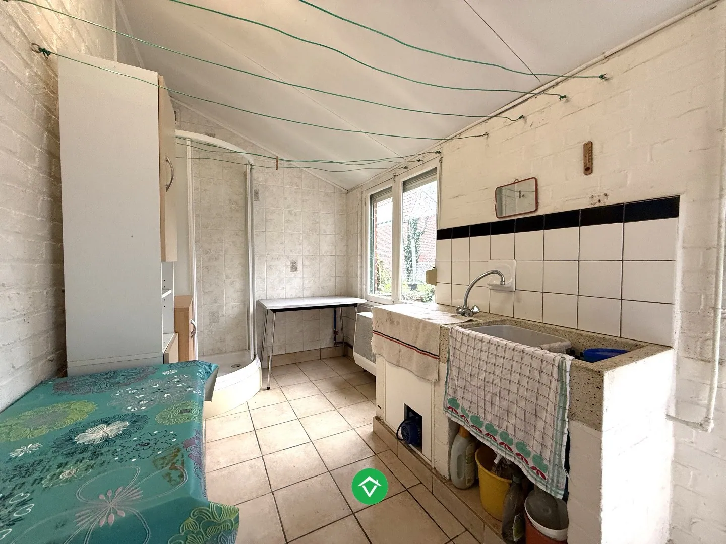 De indeling is als volgt: inkomhal - voorplaats/living - eetplaats - uitgeruste keuken - apart toilet - badkamer met douche, lavabo en aansluitingen voor andere nutsvoorzieningen - Diepe, afgesloten tuin - buitenberging - droge kelder.