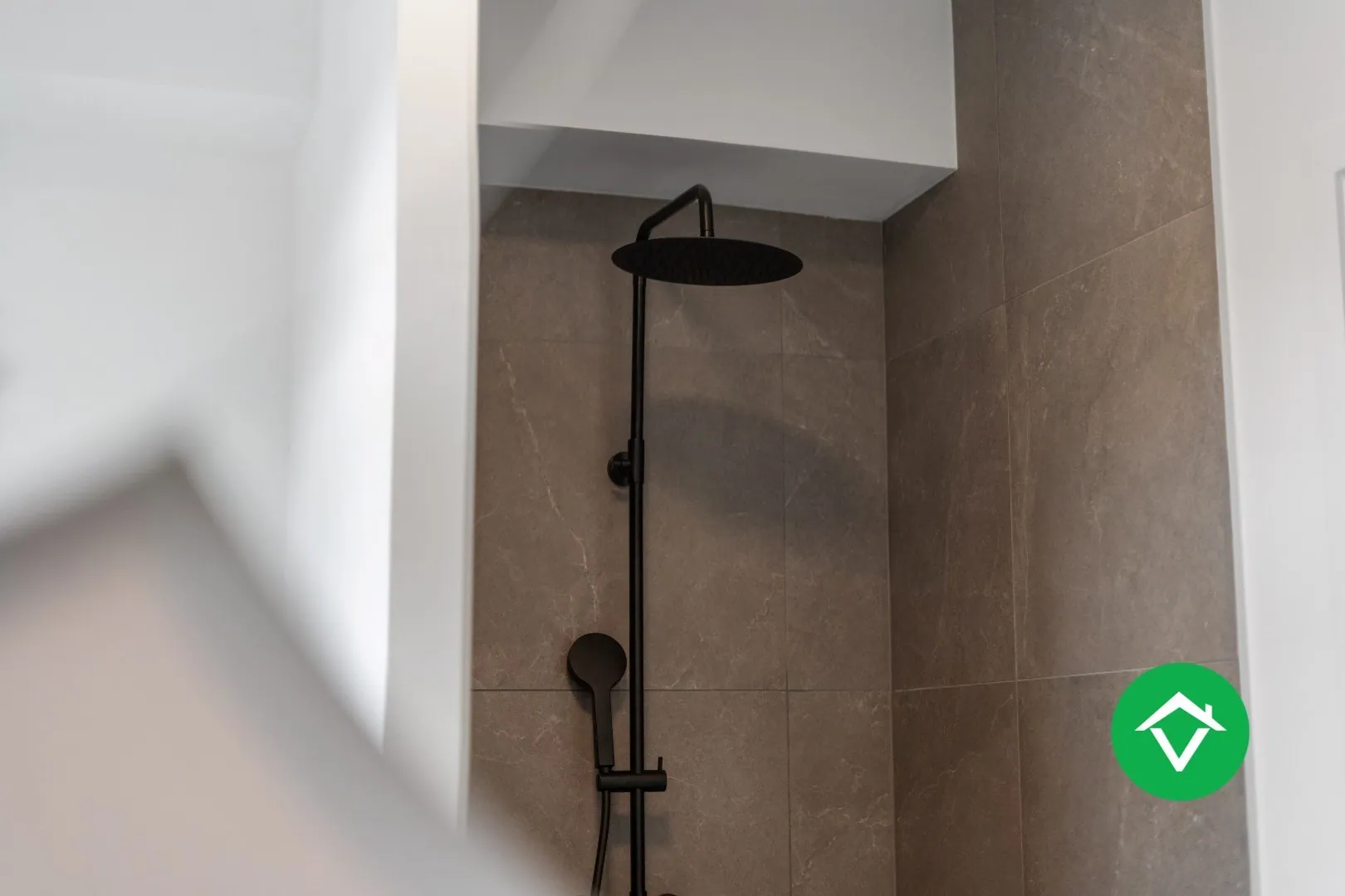 Verdiep 1: moderne badkamer met douche en meubel - één slaapkamers.
