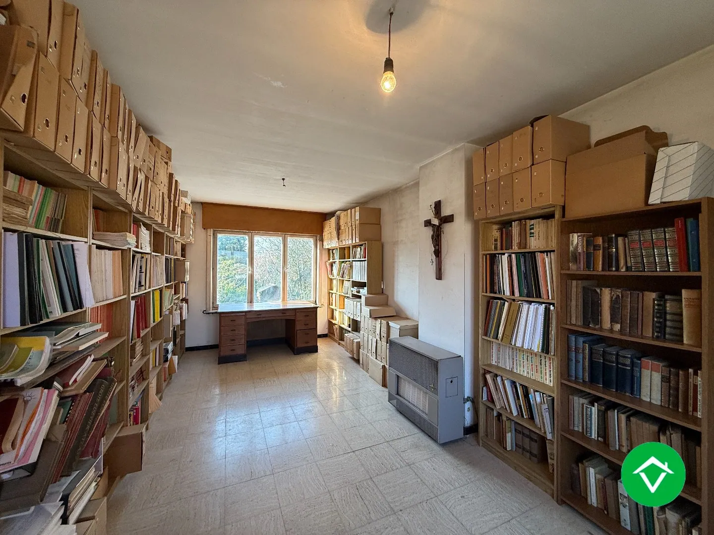 De indeling is als volgt: inkomhal - apart toilet - garage - extra berging - kelder - grote, lichtrijke leefruimte (bureau - eetplaats en zithoek) (lichtstraat, haard...) - overloop met extra toilet - uitgeruste keuken met zicht op de tuin. De tuin werd natuurlijk onderhouden en is verrassend diep!
