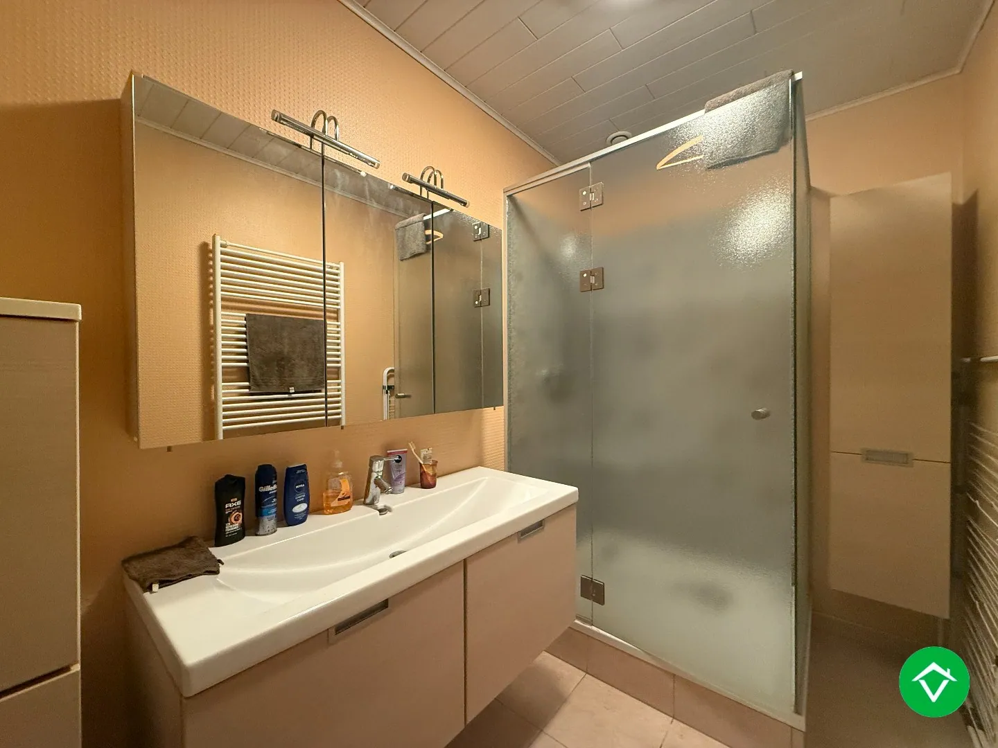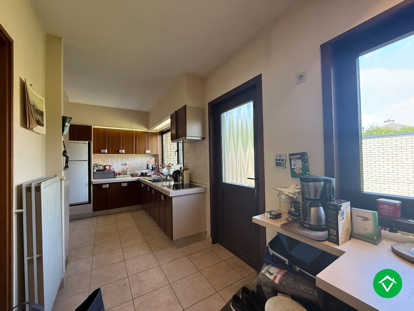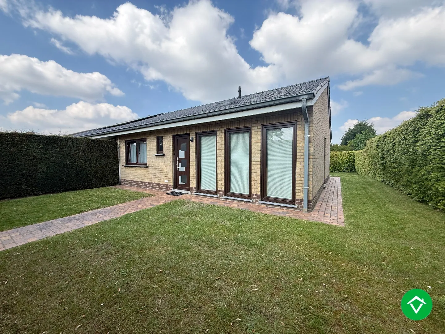 Alles bevindt zich op gelijkvloerse verdieping. Voortuin is afgescheiden door haag, ook langszij en achteraan heeft de tuin heel wat privacy.