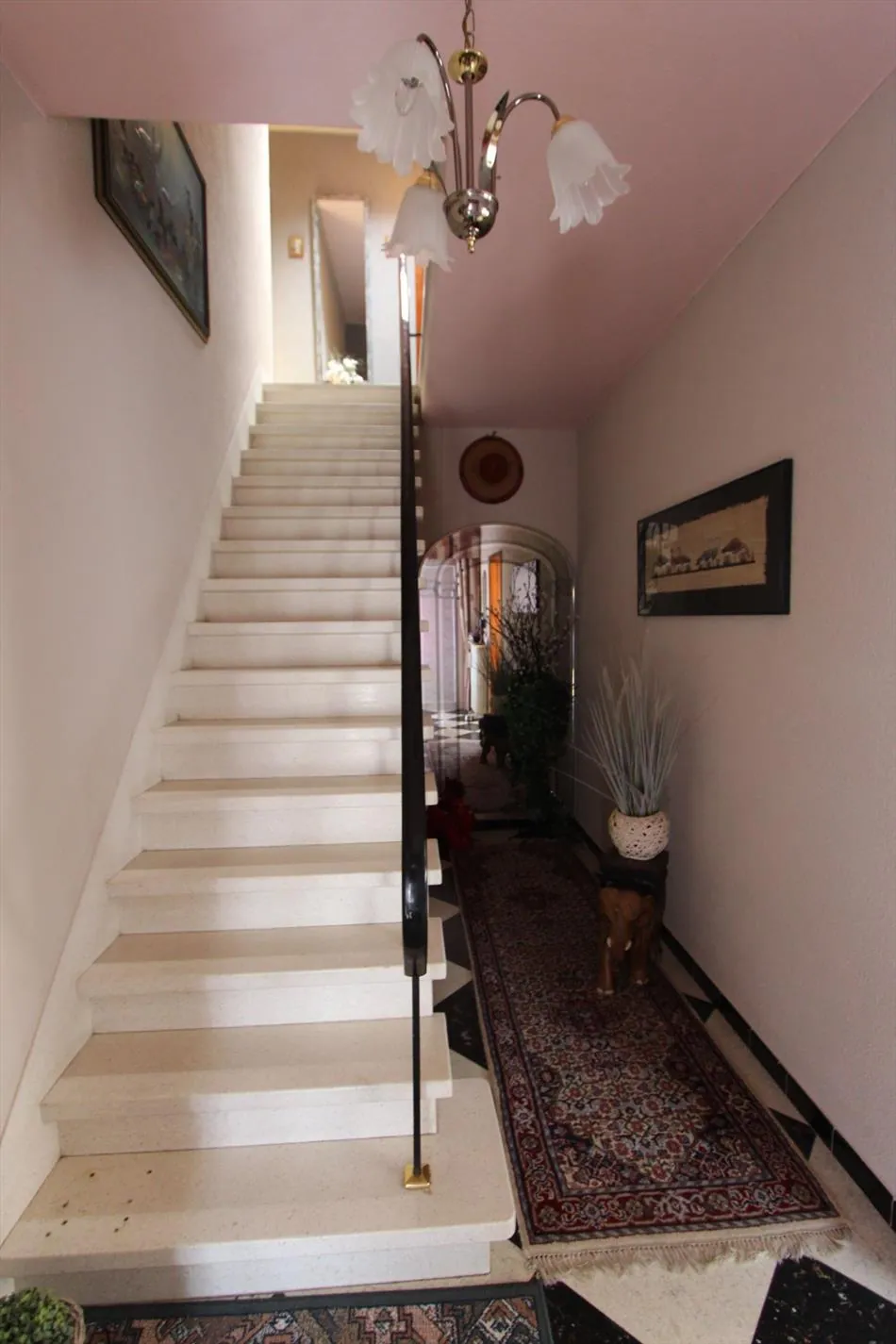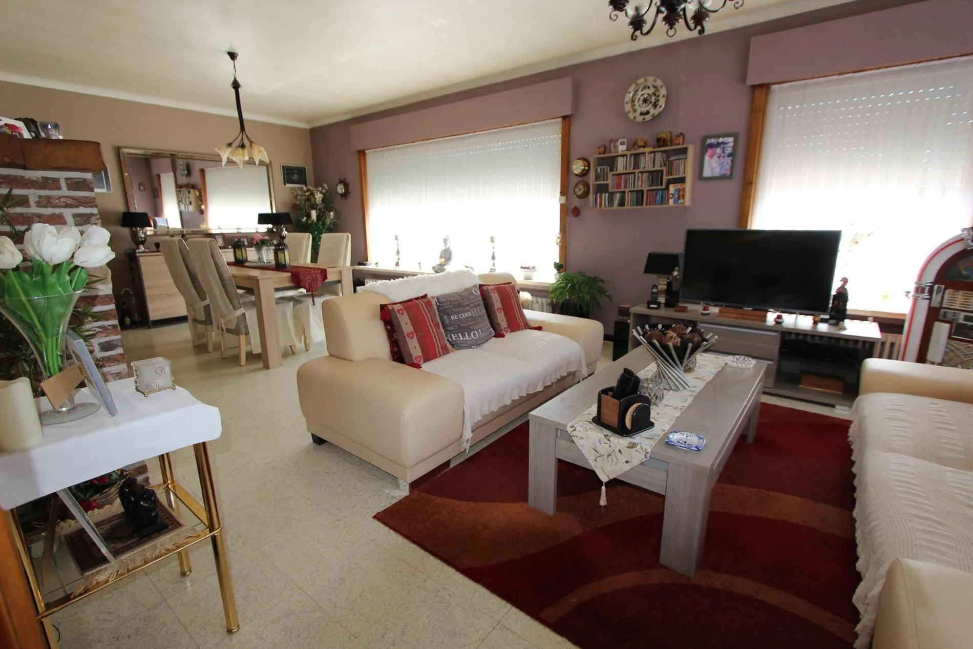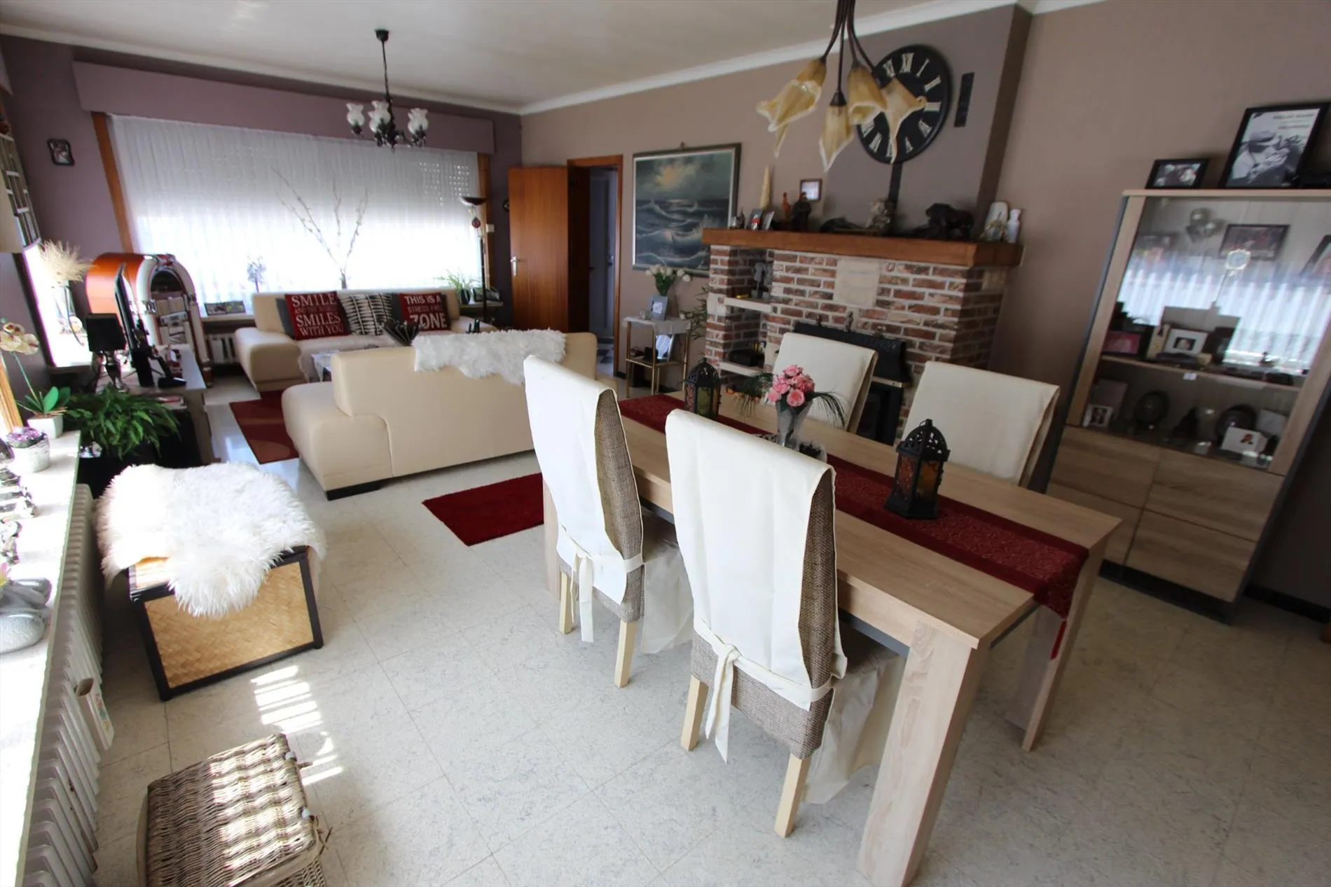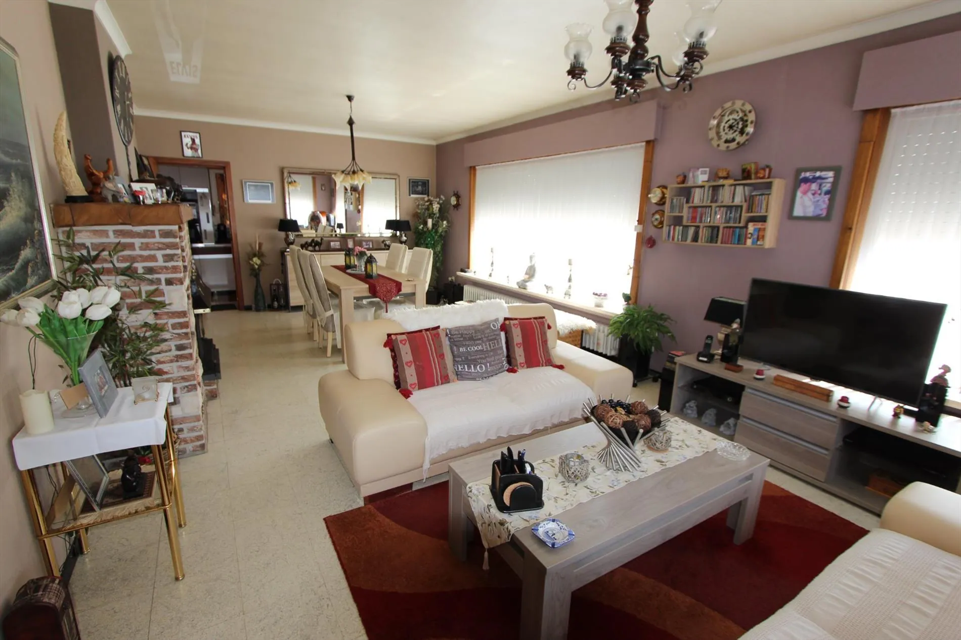 Deze alleenstaande woning is gelegen op een grondoppervlakte van 1157 m² en bestaat uit: oprit - voortuin - inkomhal - toilet - ruime living met ingebouwde haard - keuken - veranda - overdekt terras - wasplaats met doucheruimte - berging - kelder - 2 garages - zonneterras - zuidgerichte tuin - groot tuinhuis - houten bergplaats - nachthall - 4 slaapkamers - 1 bureau - badkamer. Overal rolluiken voorzien, centrale verwarming.