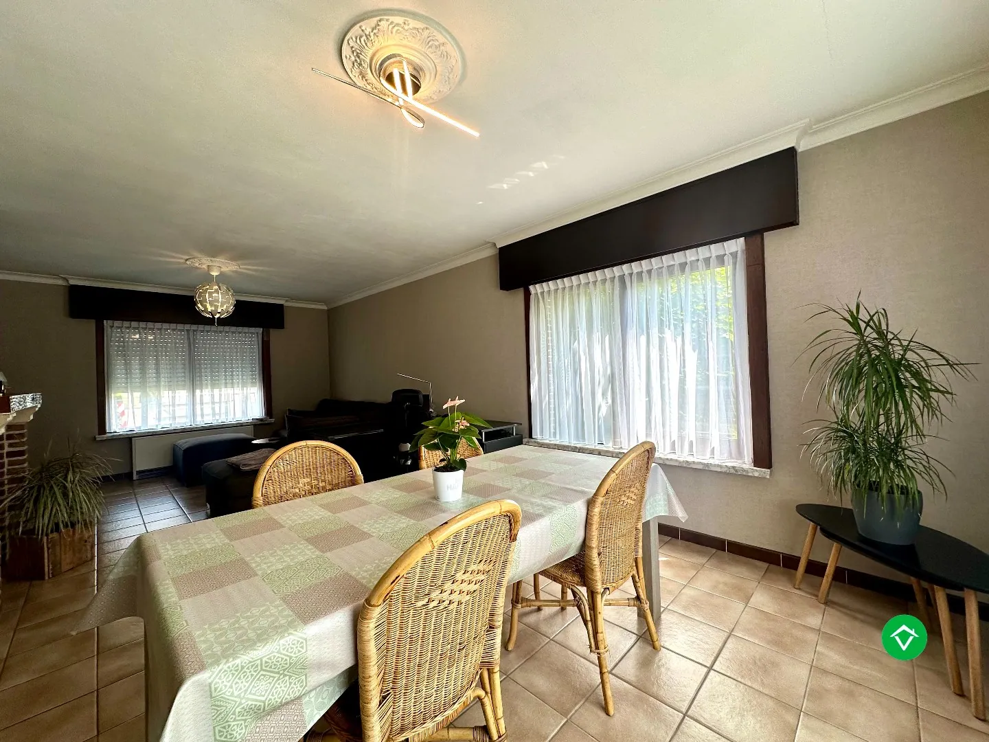 Bij het binnenkomen komt u in de inkomhal die toegang biedt tot de lichtrijke woonkamer. Aansluitend vindt u de keuken met een mooi zicht op de tuin. Vanuit de keuken bereikt u zowel de praktische wasruimte als de nachthal. Deze hal leidt naar twee slaapkamers, de badkamer en de inpandige garage.