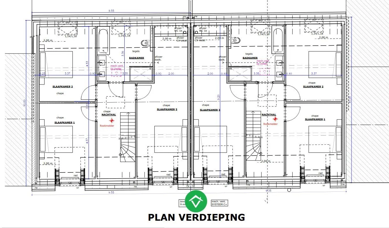 Op 1ste verdieping: nachthal - 3 grote slaapkamers, waarvan 1 voorzien van een ruime dressingruimte - badkamer.