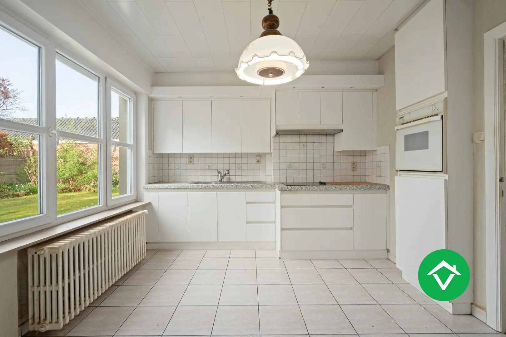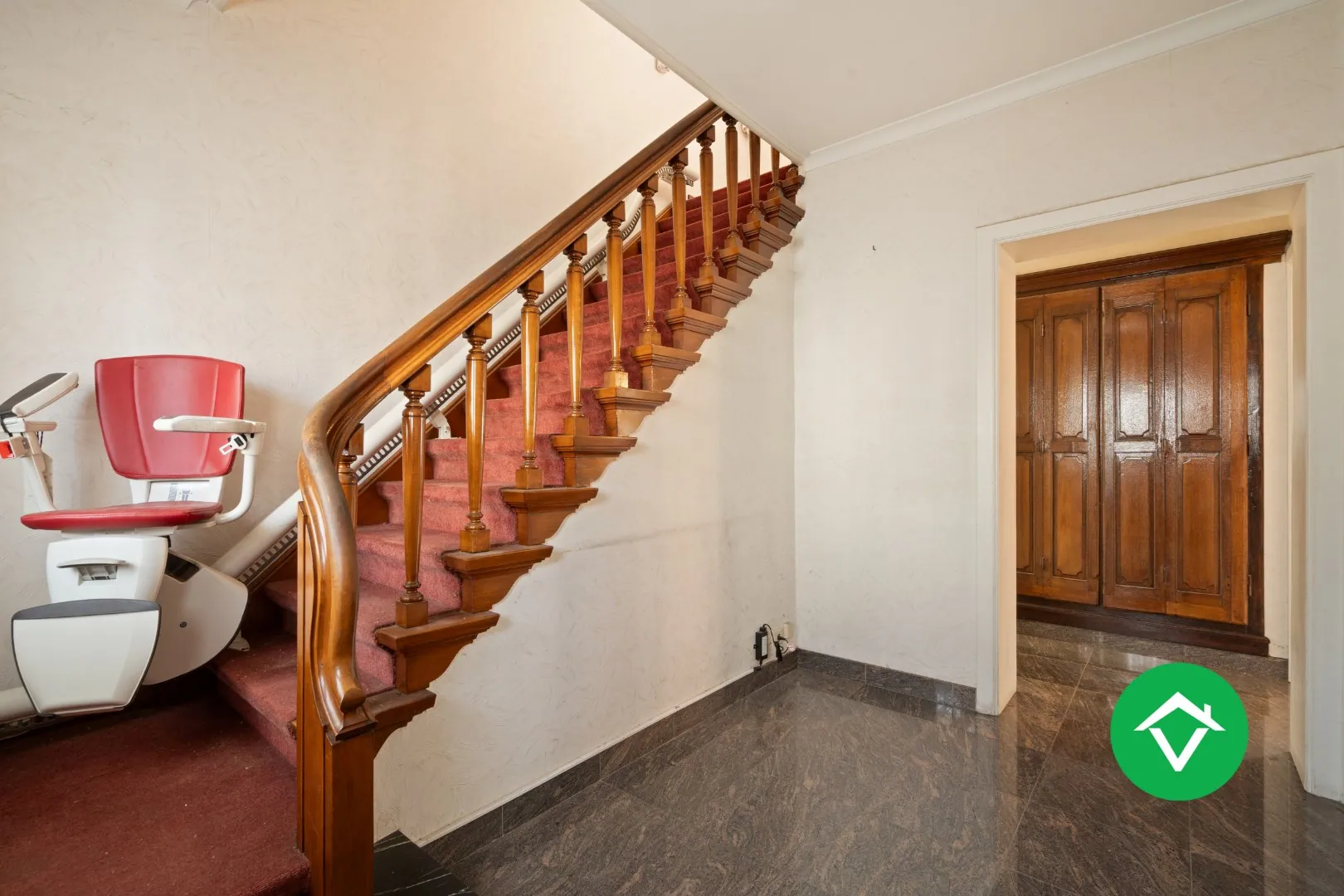 Deze woning is gelegen op een grondoppervlakte van 340 m² en bestaat uit: voortuin - oprit - inkomhal - living - keuken - ruime kelder - toilet - berging - wasplaats - grote garage - terras - tuin - nachthal - 3 slaapkamers - badkamer - ruime zonder te bereiken met een vaste trap.